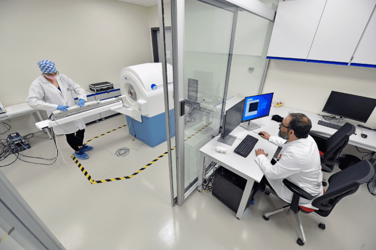 Preklinik Görüntüleme Birimimiz, kemirgen modellerde (sıçan ve fare) yüksek çözünürlüklü anatomik ve fonksiyonel görüntüleme imkânı sunmaktadır. 7T manyetik rezonans (MR) ve PET/BT cihazlarıyla donatılan altyapımız, hem akademik hem de endüstriyel araştırmalarda ileri düzey preklinik görüntüleme ihtiyaçlarını karşılamak üzere tasarlanmıştır.