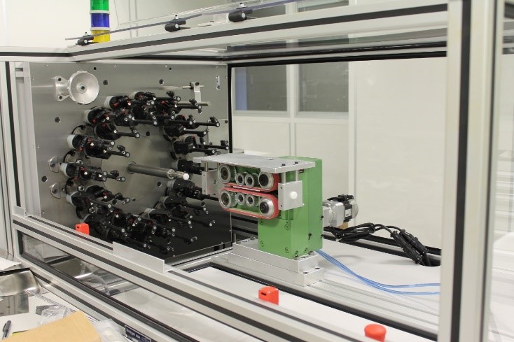 Kateterlerin şekillendirilmesi için kullanilan kalip aparatlarinin kisa surede hava ve elektrik baglantilarinin değiştirilebilecek sekilde tasarlanabilir.Polimer tüpleri zarar vermeden sabitleyebilir, basınçları ayarlanabilir kıskaçları vardır. Sistem PLC’ler (Programlanabilir mantık kontrolü) ile dokunmatik ekran uzerinden kontrol edilmektedir. Uygulanacak güç ve sıcaklık kontrolü sağlanabilmektedir. Isıtıcı koiller su ile kalıplar ise hava ile soğutulabilmektedir. Aynı anda iki tane katater şekillendirilebilmektedir.Distal uç şekillendirme, uç açma, iki farklı sertlikte polimer tüpü birbirine birleştirebilmektedir.
